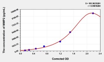 Description | The test principle applied in this kit is Sandwich enzyme immunoassay. The microtiter plate provided in this kit has been pre-coated with an antibody specific to Cattle MMP2. Standards or samples are added to the appropriate microtiter plate wells then with a biotin-conjugated antibody specific to Cattle MMP2. Next, Avidin conjugated to Horseradish Peroxidase (HRP) is added to each microplate well and incubated. After TMB substrate solution is added, only those wells that contain Cattle MMP2, biotin-conjugated antibody and enzyme-conjugated Avidin will exhibit a change in color. The enzyme-substrate reaction is terminated by the addition of sulphuric acid solution and the color change is measured spectrophotometrically at a wavelength of 450nm ± 10nm. The concentration of Cattle MMP2 in the samples is then determined by comparing the OD of the samples to the standard curve. |