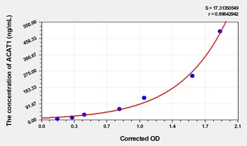 Description | The test principle applied in this kit is Sandwich enzyme immunoassay. The microtiter plate provided in this kit has been pre-coated with an antibody specific to Human ACAT1. Standards or samples are added to the appropriate microtiter plate wells then with a biotin-conjugated antibody specific to Human ACAT1. Next, Avidin conjugated to Horseradish Peroxidase (HRP) is added to each microplate well and incubated. After TMB substrate solution is added, only those wells that contain Human ACAT1, biotin-conjugated antibody and enzyme-conjugated Avidin will exhibit a change in color. The enzyme-substrate reaction is terminated by the addition of sulphuric acid solution and the color change is measured spectrophotometrically at a wavelength of 450nm ± 10nm. The concentration of Human ACAT1 in the samples is then determined by comparing the OD of the samples to the standard curve. |