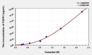 Description | The test principle applied in this kit is Sandwich enzyme immunoassay. The microtiter plate provided in this kit has been pre-coated with an antibody specific to Rabbit FGFR1. Standards or samples are added to the appropriate microtiter plate wells then with a biotin-conjugated antibody specific to Rabbit FGFR1. Next, Avidin conjugated to Horseradish Peroxidase (HRP) is added to each microplate well and incubated. After TMB substrate solution is added, only those wells that contain Rabbit FGFR1, biotin-conjugated antibody and enzyme-conjugated Avidin will exhibit a change in color. The enzyme-substrate reaction is terminated by the addition of sulphuric acid solution and the color change is measured spectrophotometrically at a wavelength of 450nm ± 10nm. The concentration of Rabbit FGFR1 in the samples is then determined by comparing the OD of the samples to the standard curve. |