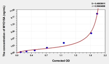 Description | The test principle applied in this kit is Sandwich enzyme immunoassay. The microtiter plate provided in this kit has been pre-coated with an antibody specific to Human MYO15A. Standards or samples are added to the appropriate microtiter plate wells then with a biotin-conjugated antibody specific to Human MYO15A. Next, Avidin conjugated to Horseradish Peroxidase (HRP) is added to each microplate well and incubated. After TMB substrate solution is added, only those wells that contain Human MYO15A, biotin-conjugated antibody and enzyme-conjugated Avidin will exhibit a change in color. The enzyme-substrate reaction is terminated by the addition of sulphuric acid solution and the color change is measured spectrophotometrically at a wavelength of 450nm ± 10nm. The concentration of Human MYO15A in the samples is then determined by comparing the OD of the samples to the standard curve. |