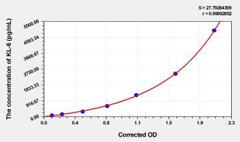 Description | The test principle applied in this kit is Sandwich enzyme immunoassay. The microtiter plate provided in this kit has been pre-coated with an antibody specific to Mouse KL-6. Standards or samples are added to the appropriate microtiter plate wells then with a biotin-conjugated antibody specific to Mouse KL-6. Next, Avidin conjugated to Horseradish Peroxidase (HRP) is added to each microplate well and incubated. After TMB substrate solution is added, only those wells that contain Mouse KL-6, biotin-conjugated antibody and enzyme-conjugated Avidin will exhibit a change in color. The enzyme-substrate reaction is terminated by the addition of sulphuric acid solution and the color change is measured spectrophotometrically at a wavelength of 450nm ± 10nm. The concentration of Mouse KL-6 in the samples is then determined by comparing the OD of the samples to the standard curve. |