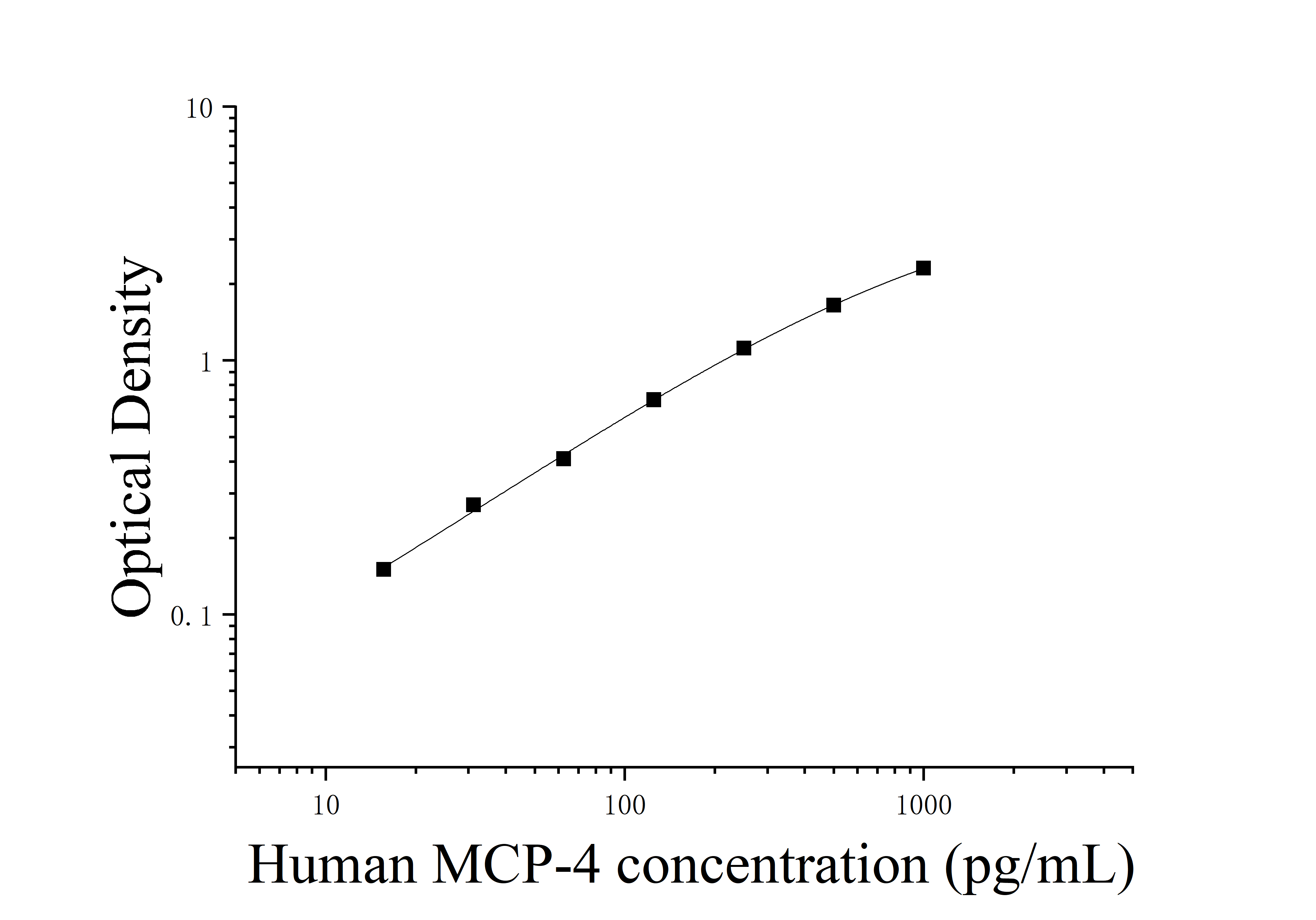 由于实验操作条件的不同( 如操作者、移液技术、洗板技术和稳定条件等),标准曲线的OD值会有所差异。以下数据和曲线仅供参考,实验者需根据自己的实验建立标准曲线。