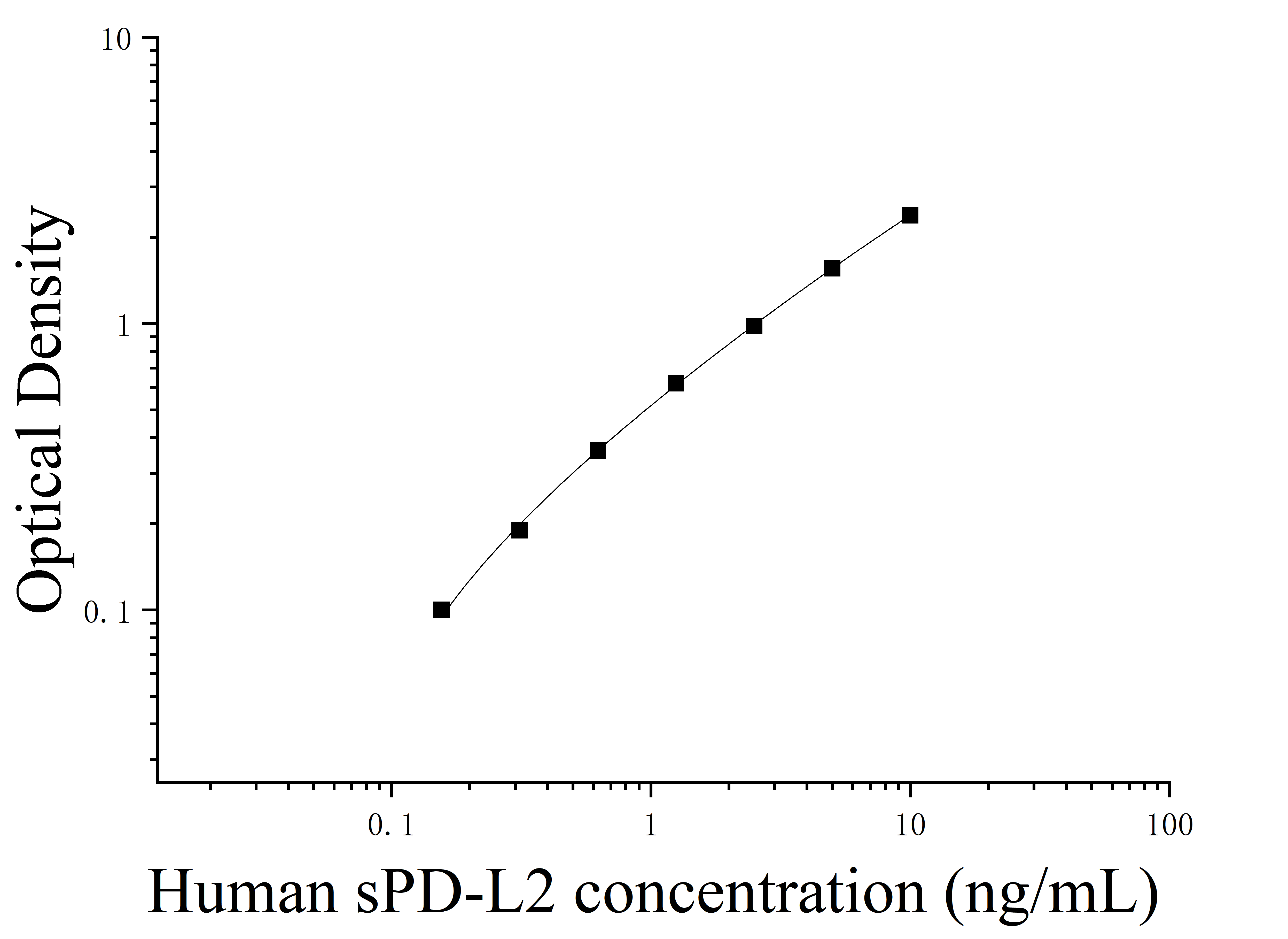 由于实验操作条件的不同( 如操作者、移液技术、洗板技术和稳定条件等),标准曲线的OD值会有所差异。以下数据和曲线仅供参考,实验者需根据自己的实验建立标准曲线。