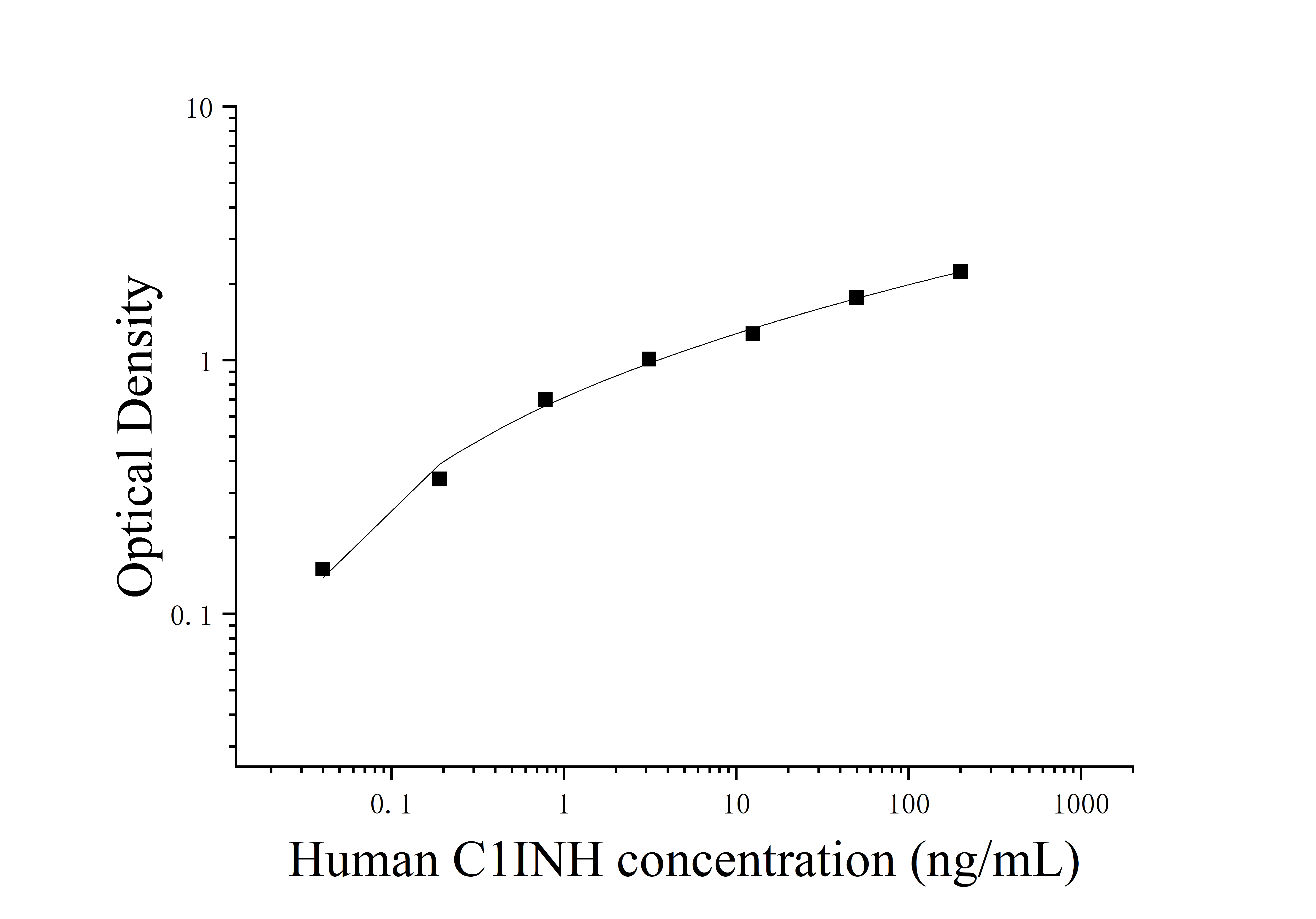 由于实验操作条件的不同( 如操作者、移液技术、洗板技术和稳定条件等),标准曲线的OD值会有所差异。以下数据和曲线仅供参考,实验者需根据自己的实验建立标准曲线。