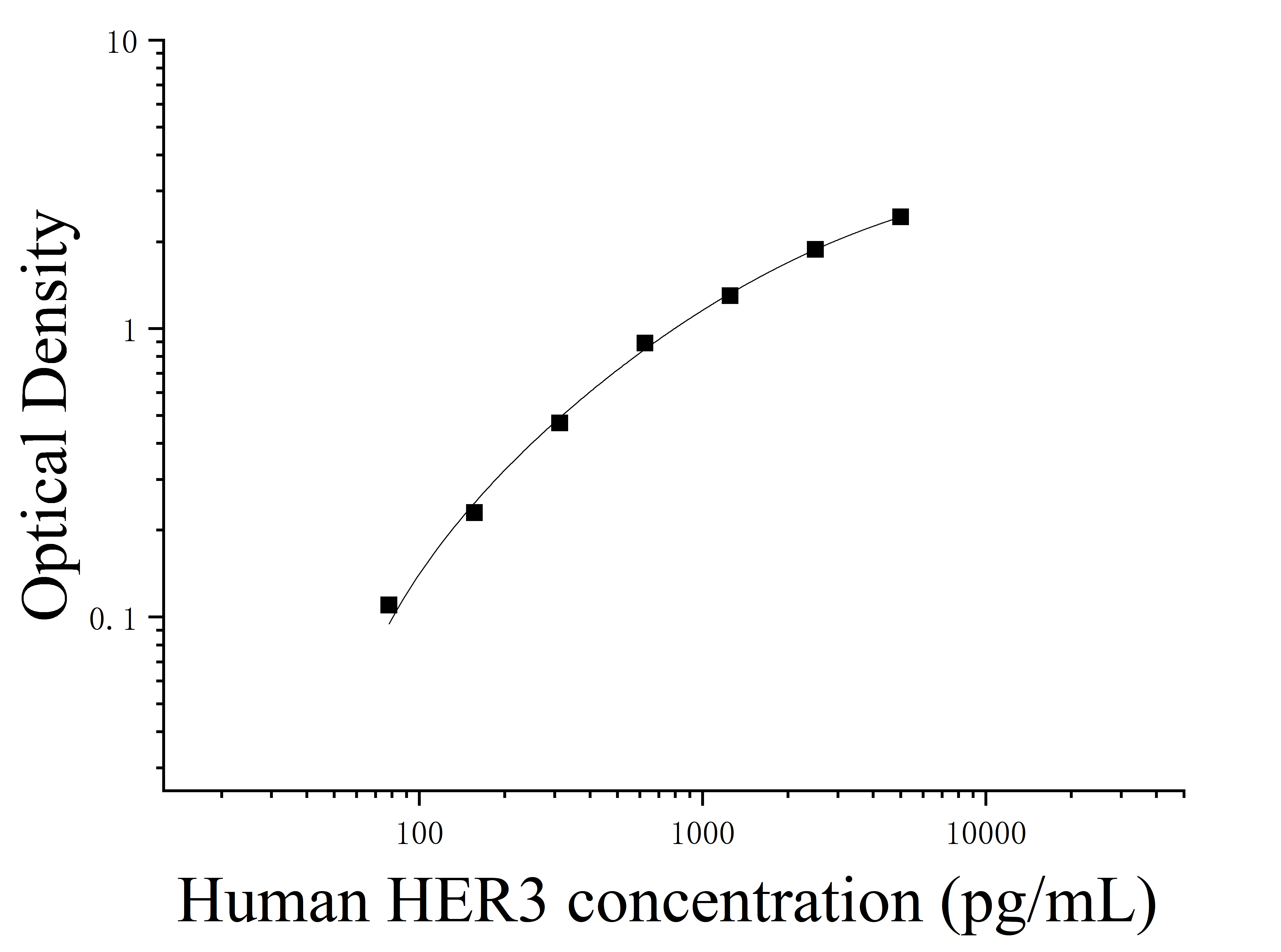 由于实验操作条件的不同( 如操作者、移液技术、洗板技术和稳定条件等),标准曲线的OD值会有所差异。以下数据和曲线仅供参考,实验者需根据自己的实验建立标准曲线。