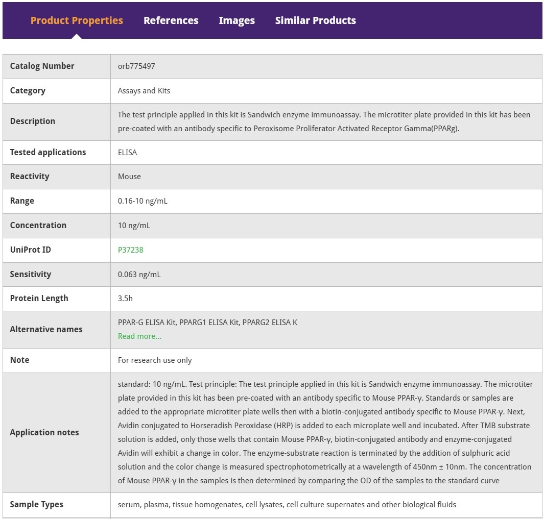 1、Mouse PPARg ELISA Kit(orb775497,Biorbyt)