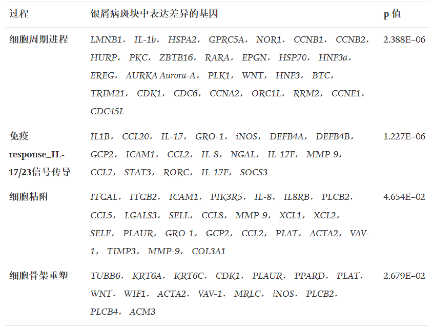 表1.顶级FRA1介导的过程,对银屑病很重要(用GSE78023的表达数据丰富MetaCore途径数据库)。