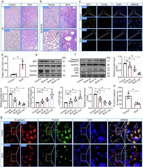 图 1.PLAC8 在 BLM 诱导的小鼠肺中降低。