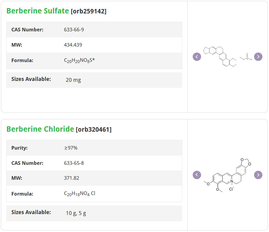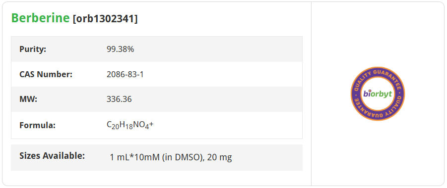 Biorbyt天然产物—小檗碱(berberine)及其衍生物,科研用: