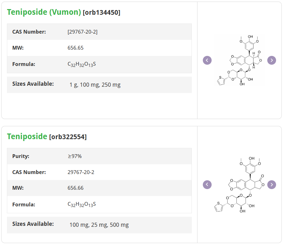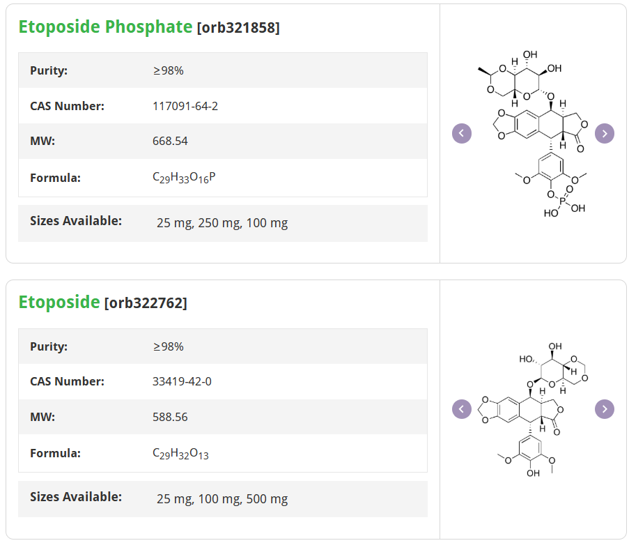 Biorbyt天然产物—替尼泊苷(Teniposide)和 依托泊苷(Etoposide)及其衍生物,科研用: