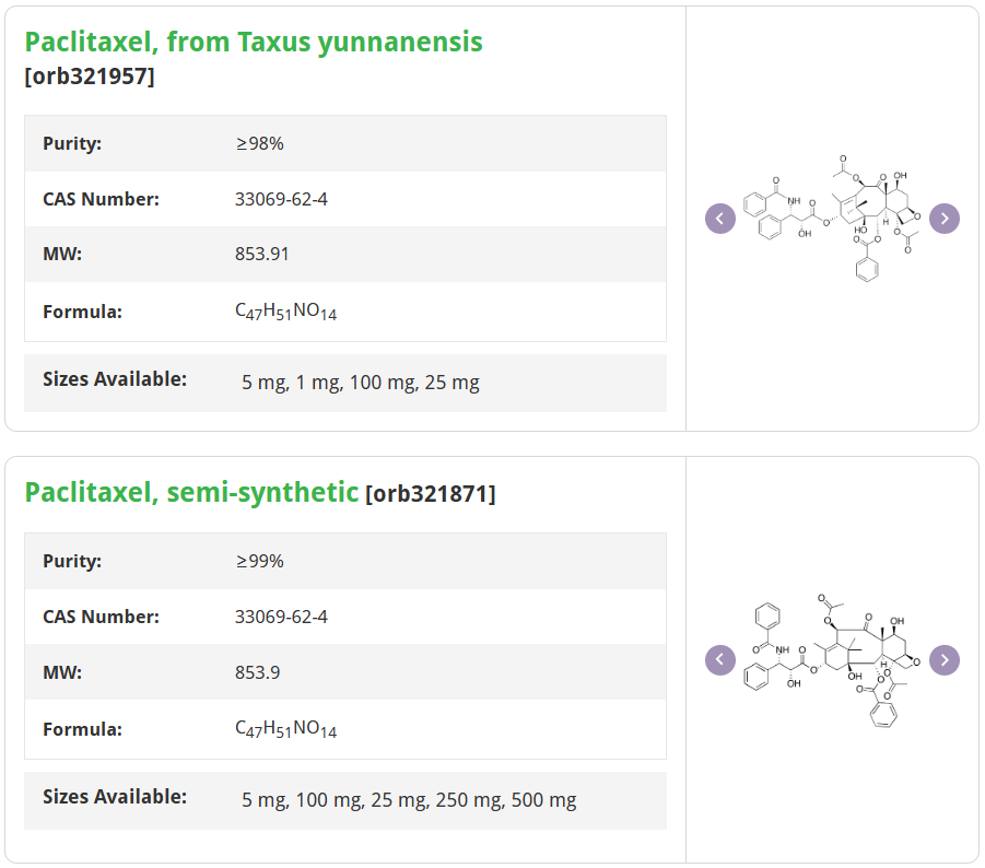 1971年,紫杉醇首次从太平洋紫杉中分离出来,用作多种形式癌症的主要化学治疗剂,包括卵巢癌、肺癌和乳腺癌。在20世纪80年代,另一种名为多西他赛(Taxotere®)的半合成紫杉烷药物从欧洲红豆杉中分离出来。