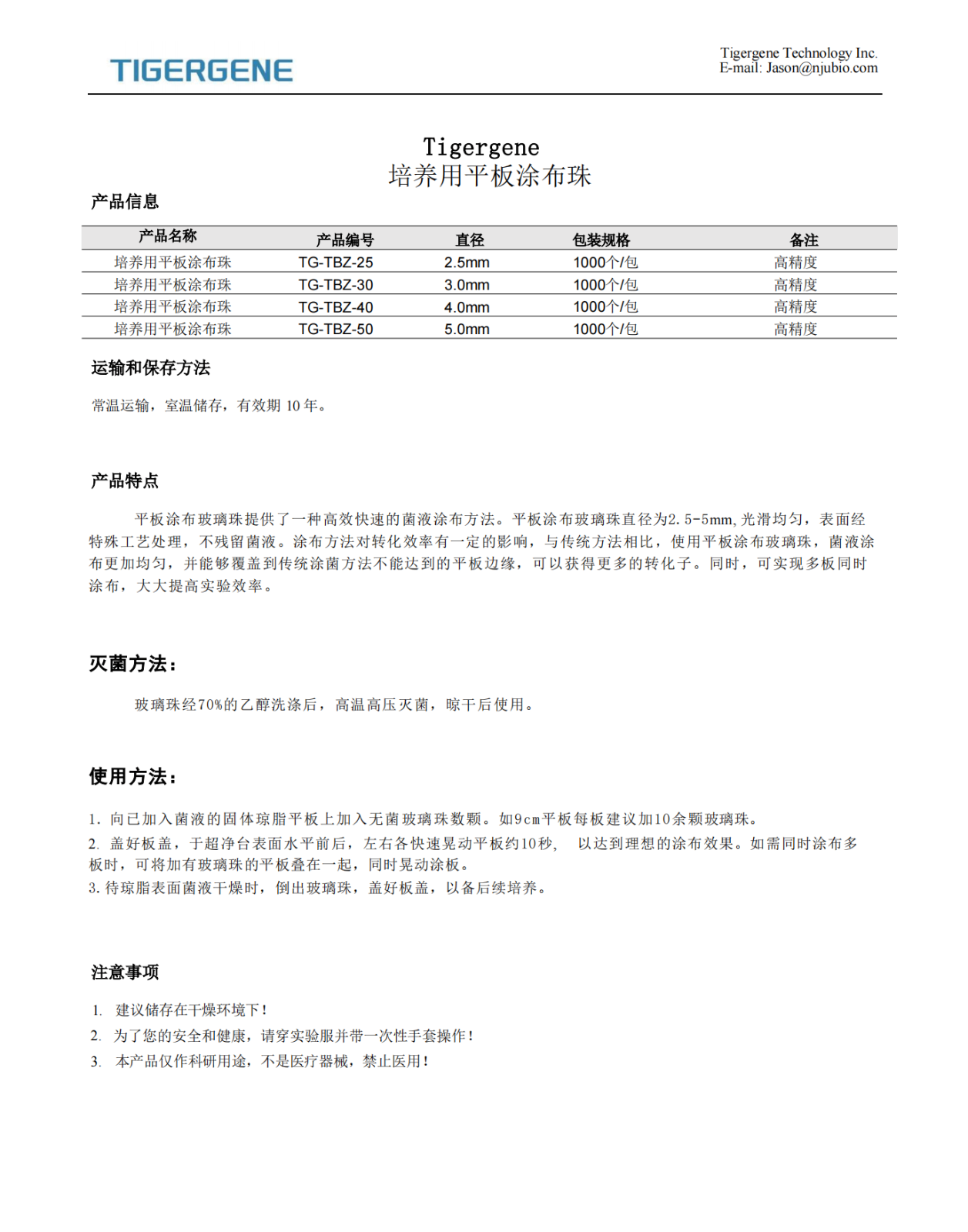 Tigergene实验用氧化锆珠说明书