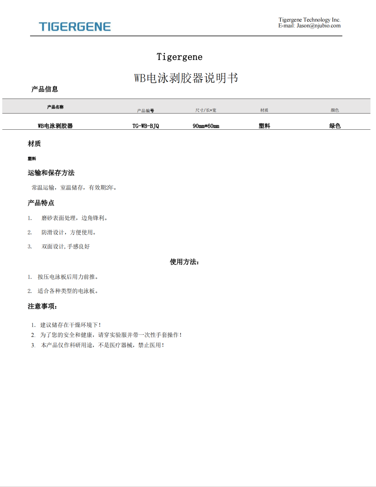 Tigergene实验用氧化锆珠说明书