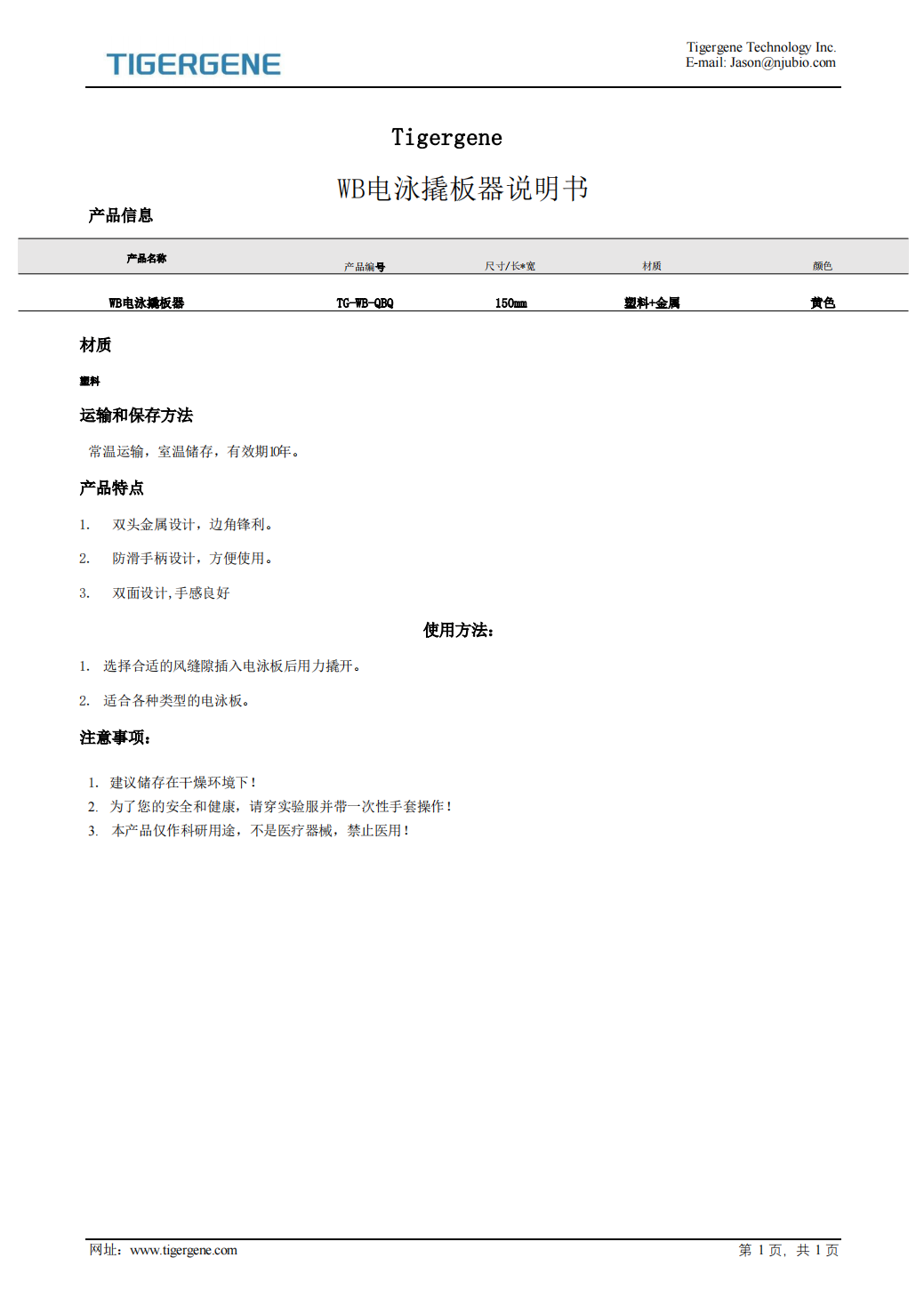 Tigergene实验用氧化锆珠说明书