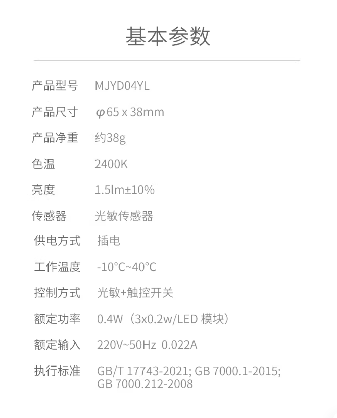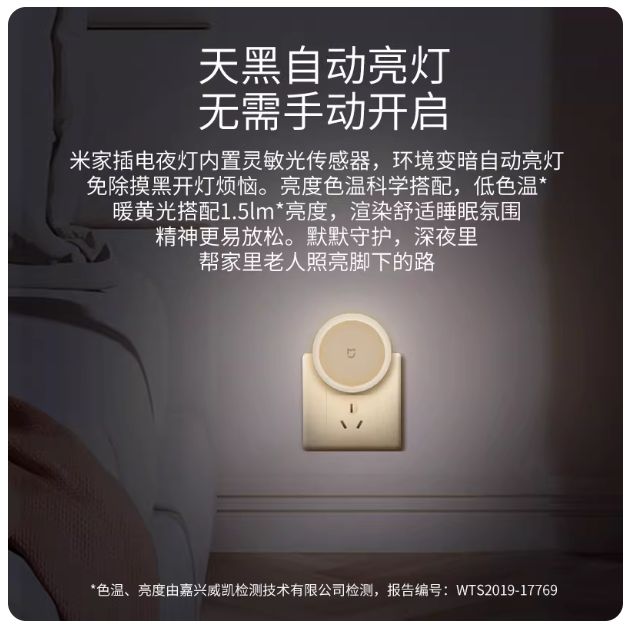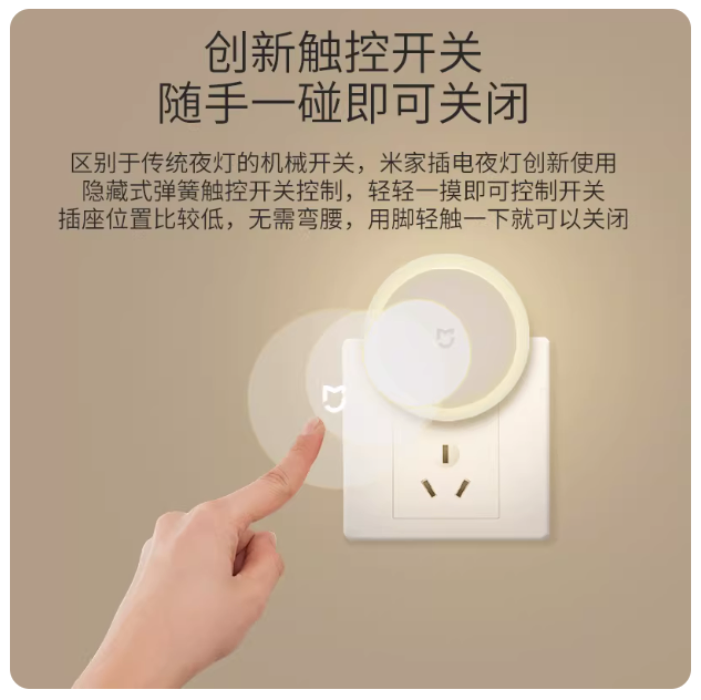 米家LED床头触控插电夜灯