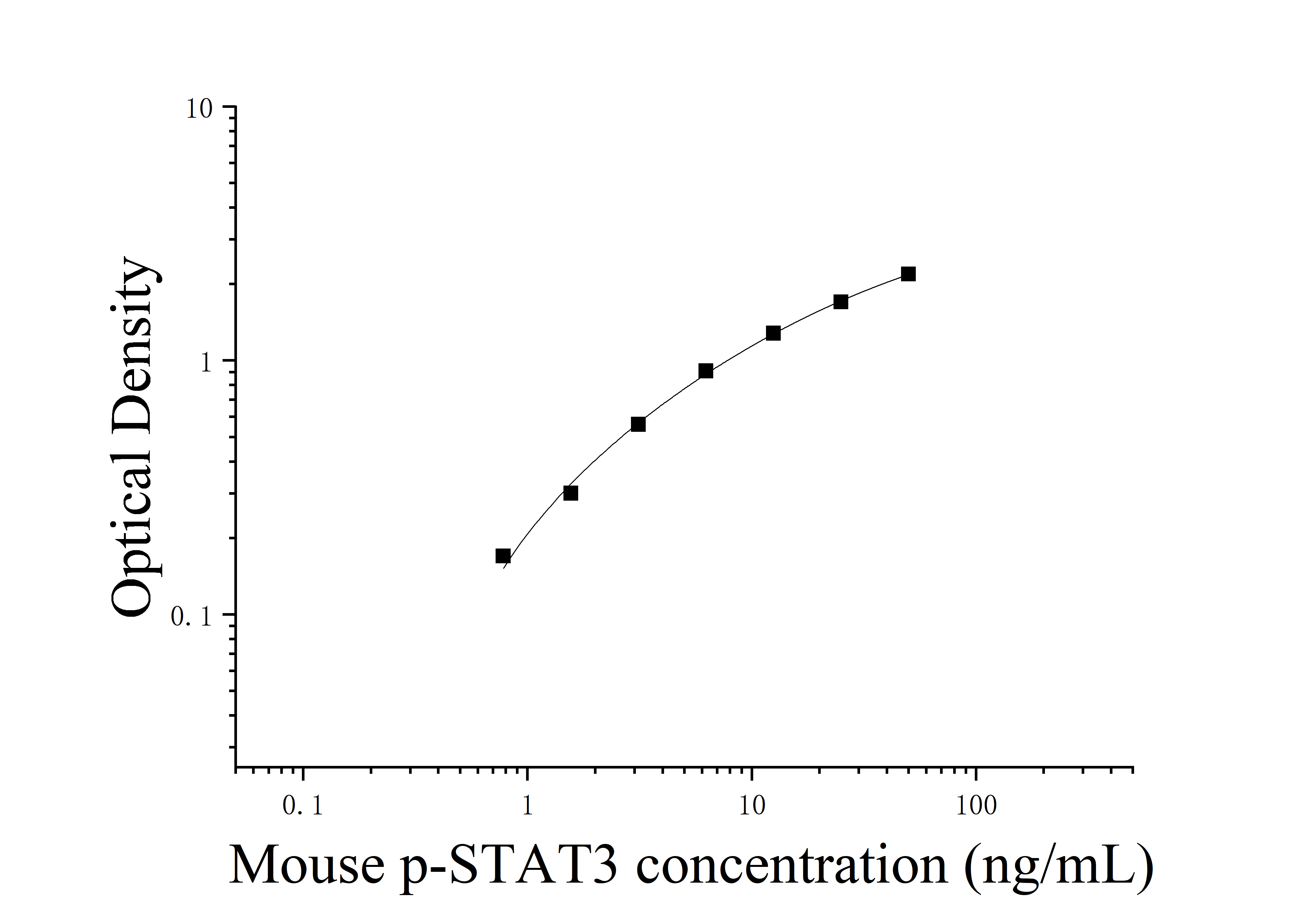 由于实验操作条件的不同( 如操作者、移液技术、洗板技术和稳定条件等),标准曲线的OD值会有所差异。以下数据和曲线仅供参考,实验者需根据自己的实验建立标准曲线。