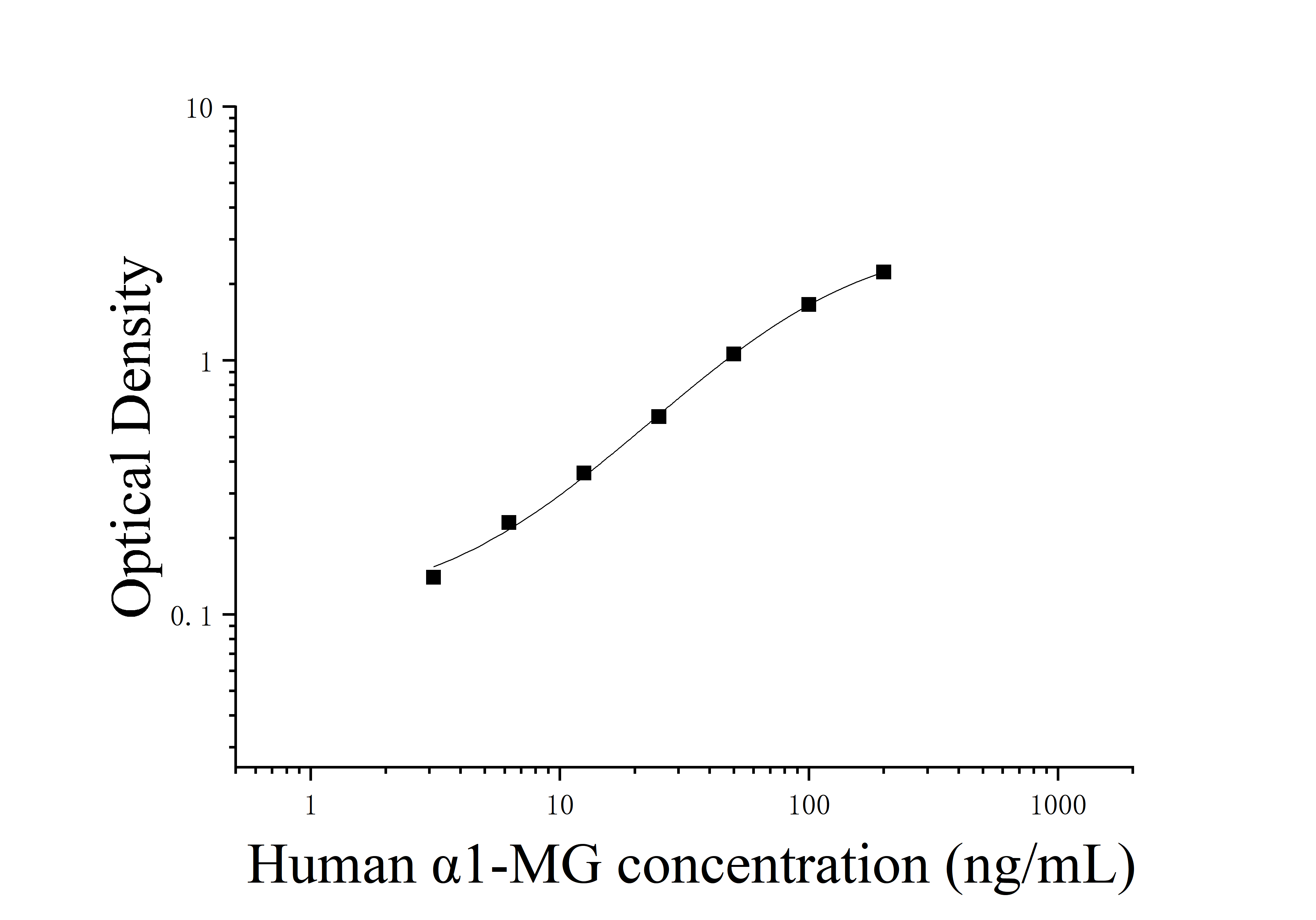 由于实验操作条件的不同( 如操作者、移液技术、洗板技术和稳定条件等),标准曲线的OD值会有所差异。以下数据和曲线仅供参考,实验者需根据自己的实验建立标准曲线。