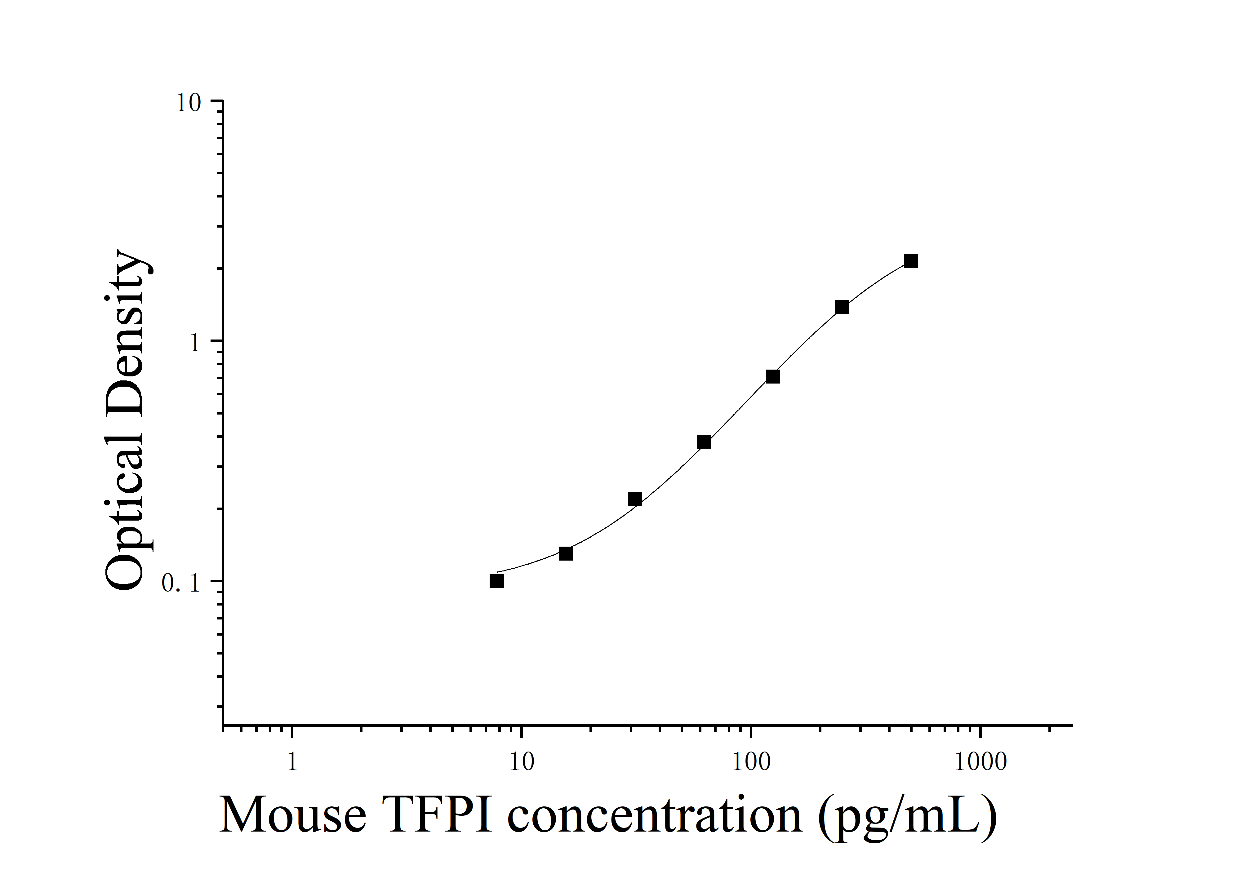 由于实验操作条件的不同( 如操作者、移液技术、洗板技术和稳定条件等),标准曲线的OD值会有所差异。以下数据和曲线仅供参考,实验者需根据自己的实验建立标准曲线。