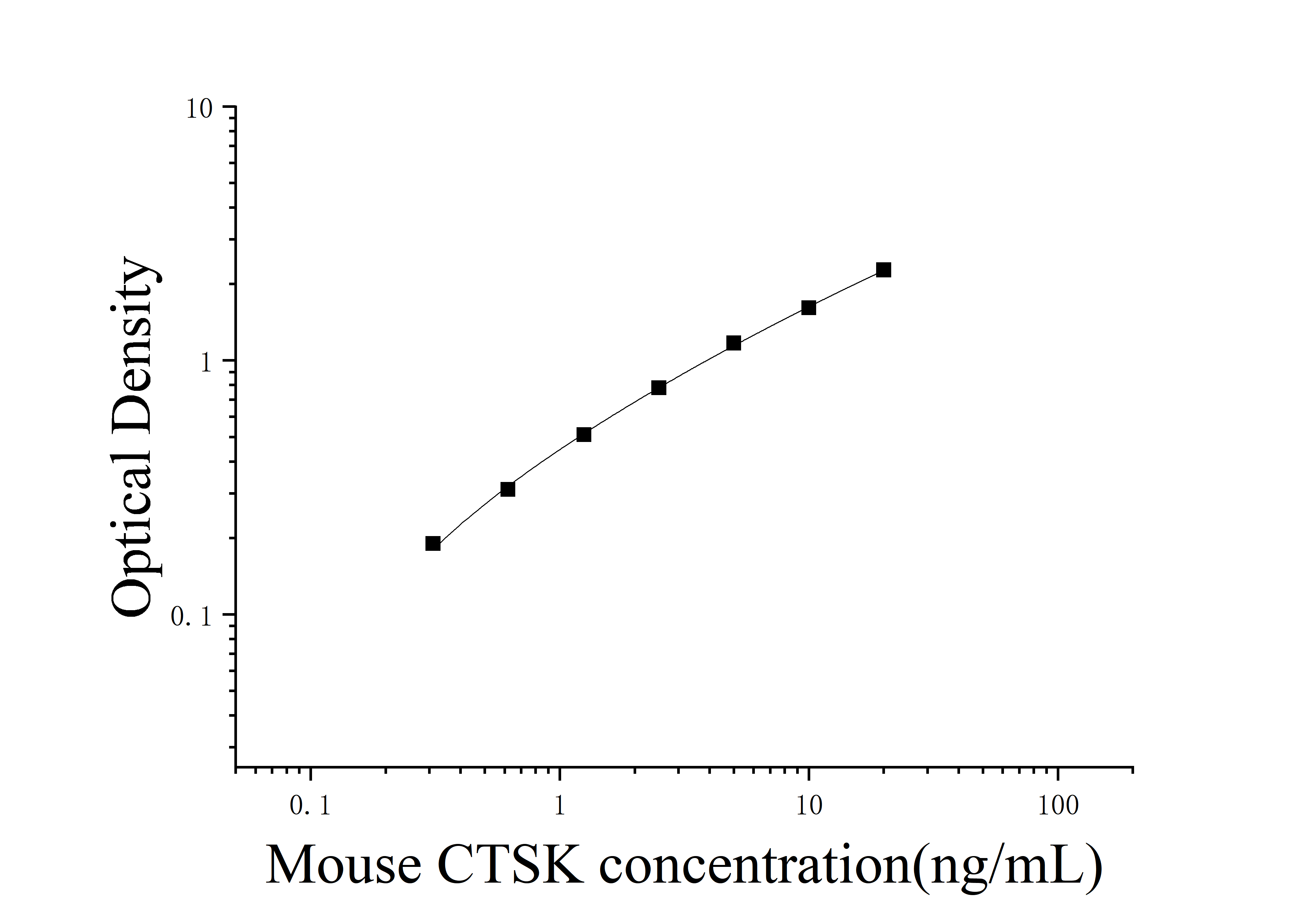 由于实验操作条件的不同( 如操作者、移液技术、洗板技术和稳定条件等),标准曲线的OD值会有所差异。以下数据和曲线仅供参考,实验者需根据自己的实验建立标准曲线。
