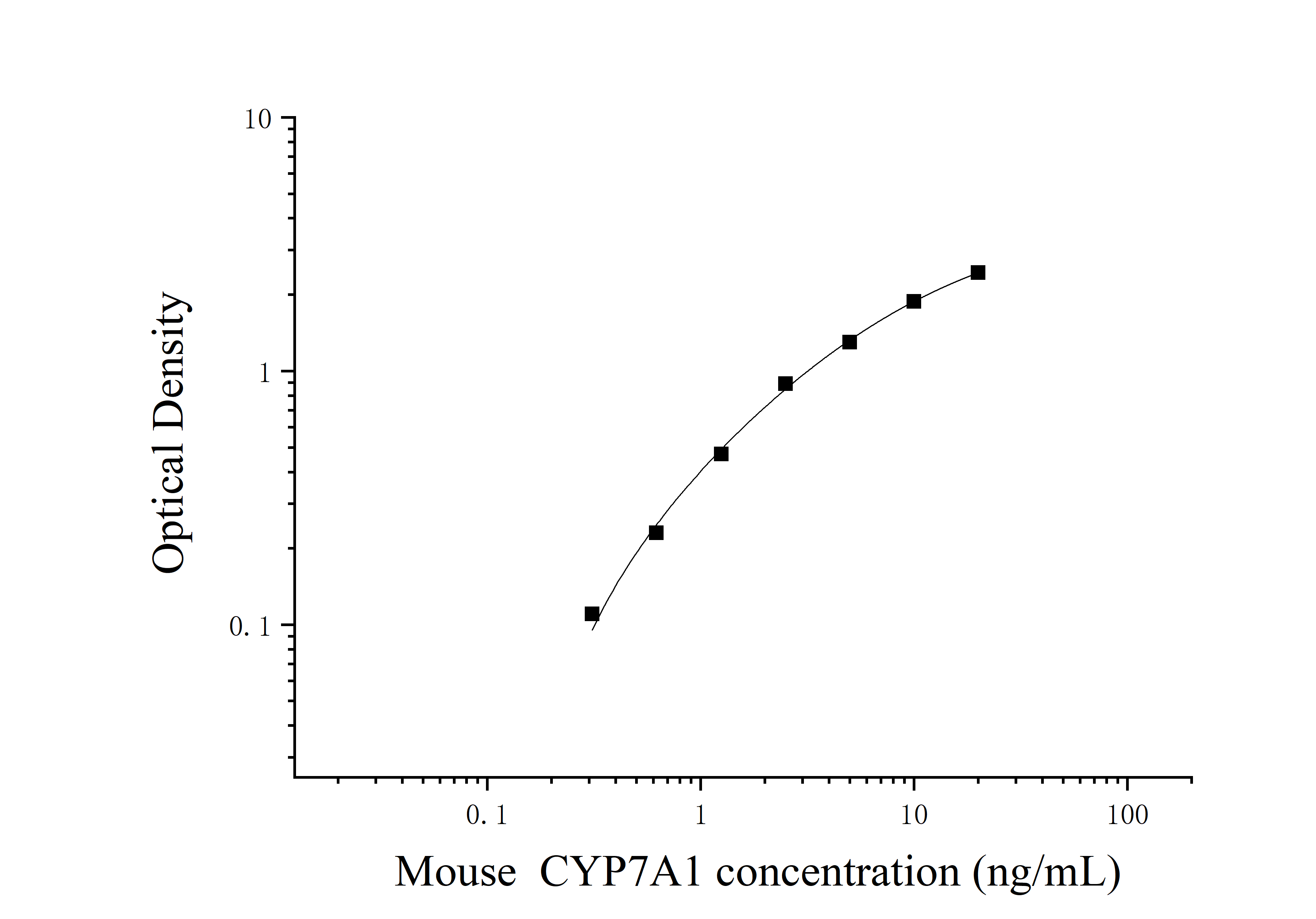 由于实验操作条件的不同( 如操作者、移液技术、洗板技术和稳定条件等),标准曲线的OD值会有所差异。以下数据和曲线仅供参考,实验者需根据自己的实验建立标准曲线。