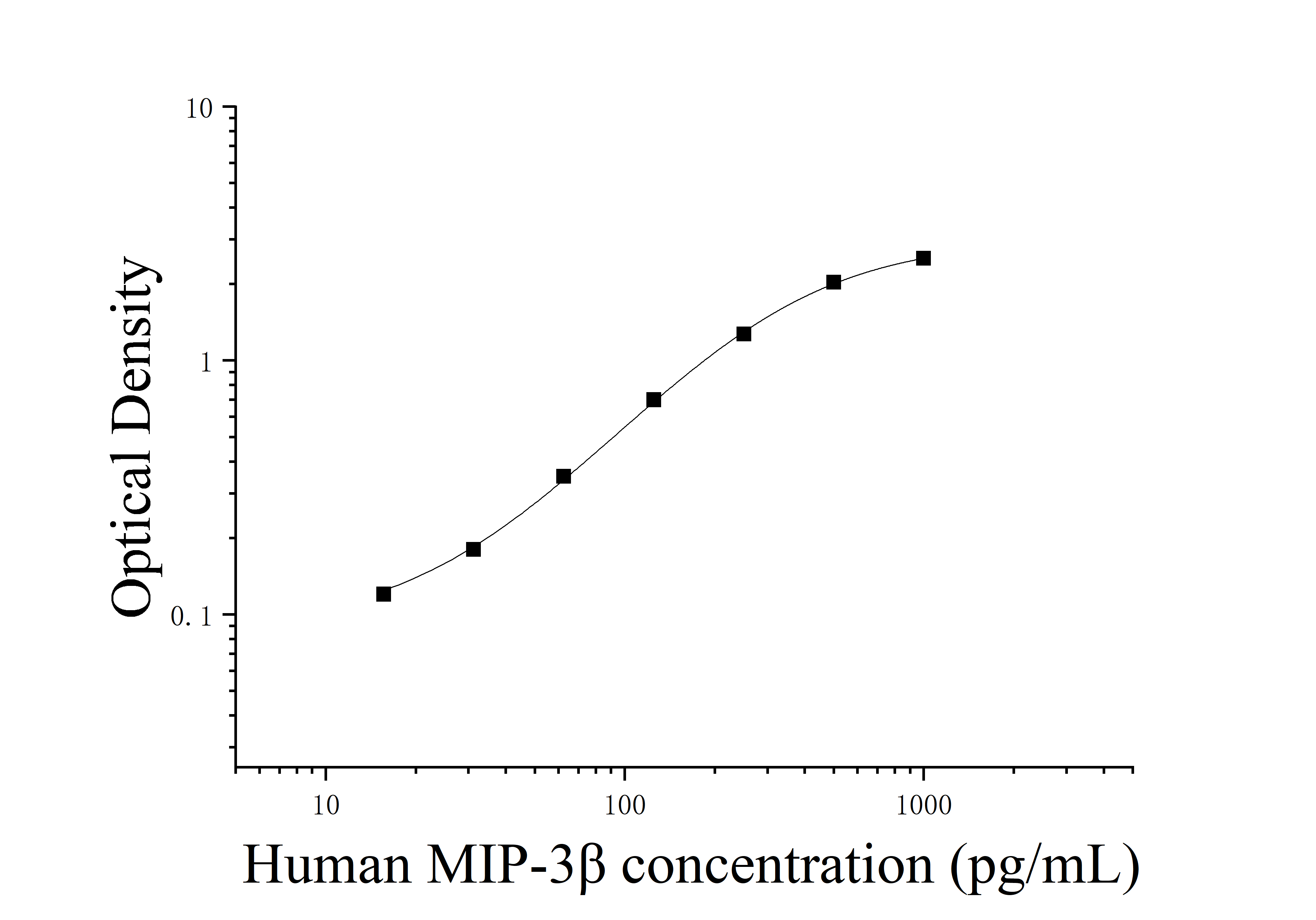 由于实验操作条件的不同( 如操作者、移液技术、洗板技术和稳定条件等),标准曲线的OD值会有所差异。以下数据和曲线仅供参考,实验者需根据自己的实验建立标准曲线。