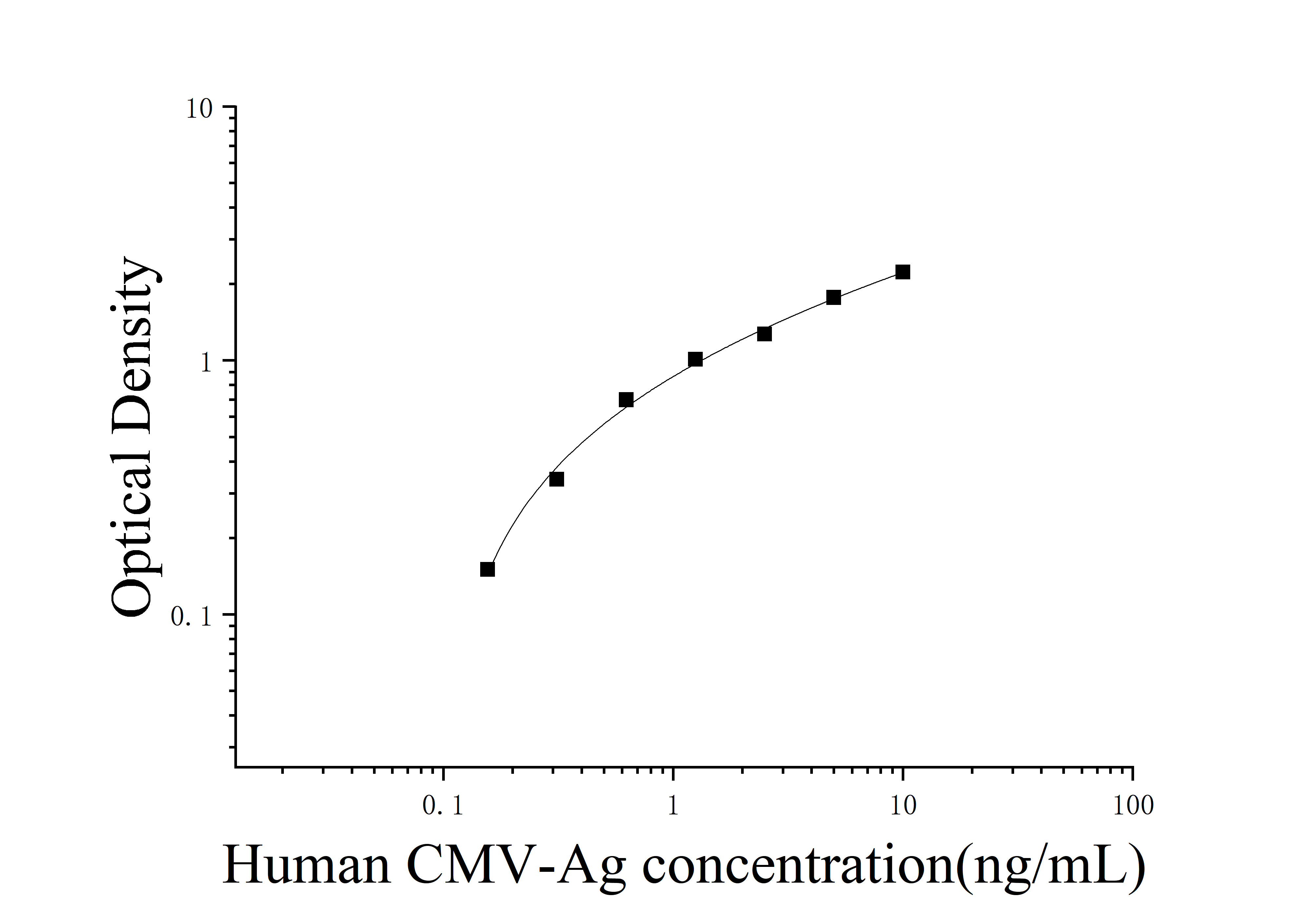 由于实验操作条件的不同( 如操作者、移液技术、洗板技术和稳定条件等),标准曲线的OD值会有所差异。以下数据和曲线仅供参考,实验者需根据自己的实验建立标准曲线。
