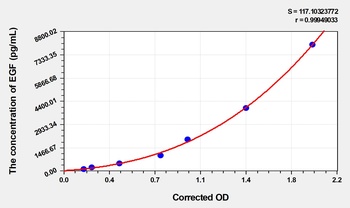 Description | The test principle applied in this kit is Sandwich enzyme immunoassay. The microtiter plate provided in this kit has been pre-coated with an antibody specific to Chicken EGF. Standards or samples are added to the appropriate microtiter plate wells then with a biotin-conjugated antibody specific to Chicken EGF. Next, Avidin conjugated to Horseradish Peroxidase (HRP) is added to each microplate well and incubated. After TMB substrate solution is added, only those wells that contain Chicken EGF, biotin-conjugated antibody and enzyme-conjugated Avidin will exhibit a change in color. The enzyme-substrate reaction is terminated by the addition of sulphuric acid solution and the color change is measured spectrophotometrically at a wavelength of 450nm ± 10nm. The concentration of Chicken EGF in the samples is then determined by comparing the OD of the samples to the standard curve. |