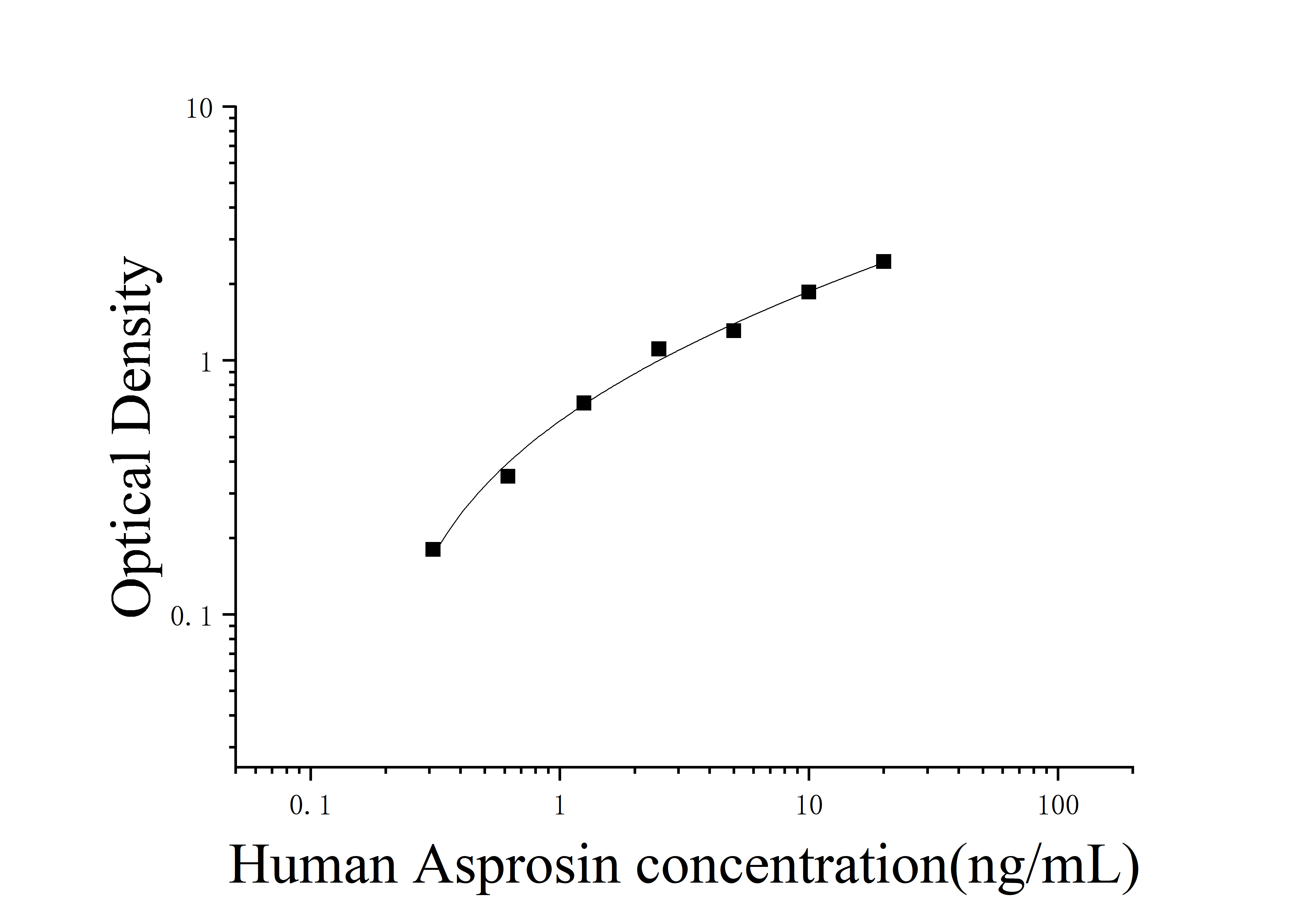 由于实验操作条件的不同( 如操作者、移液技术、洗板技术和稳定条件等),标准曲线的OD值会有所差异。以下数据和曲线仅供参考,实验者需根据自己的实验建立标准曲线。