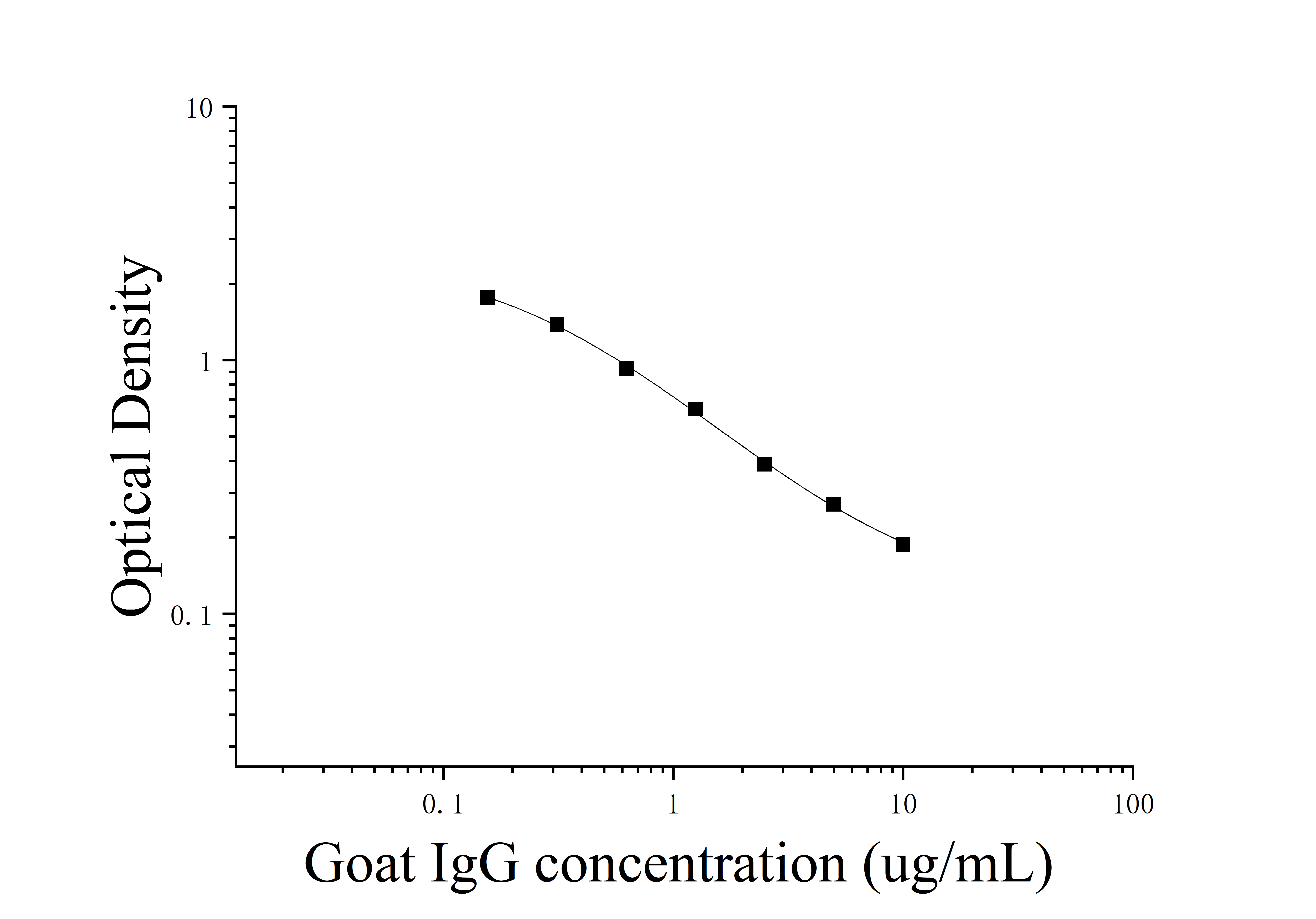 由于实验操作条件的不同( 如操作者、移液技术、洗板技术和稳定条件等),标准曲线的OD值会有所差异。以下数据和曲线仅供参考,实验者需根据自己的实验建立标准曲线。