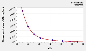 Description | This assay employs the competitive inhibition enzyme immunoassay technique. The microtiter plate provided in this kit has been pre-coated with Rat Glu protein. Standards or samples are added to the appropriate microtiter plate wells then with a biotin-conjugated antibody specific to Rat Glu. Next, Avidin conjugated to Horseradish Peroxidase (HRP) is added to each microplate well and incubated. After TMB substrate solution is added. The enzyme-substrate reaction is terminated by the addition of sulphuric acid solution and the color change is measured spectrophotometrically at a wavelength of 450nm ± 10nm. The concentration of Rat Glu in the samples is then determined by comparing the OD of the samples to the standard curve. |