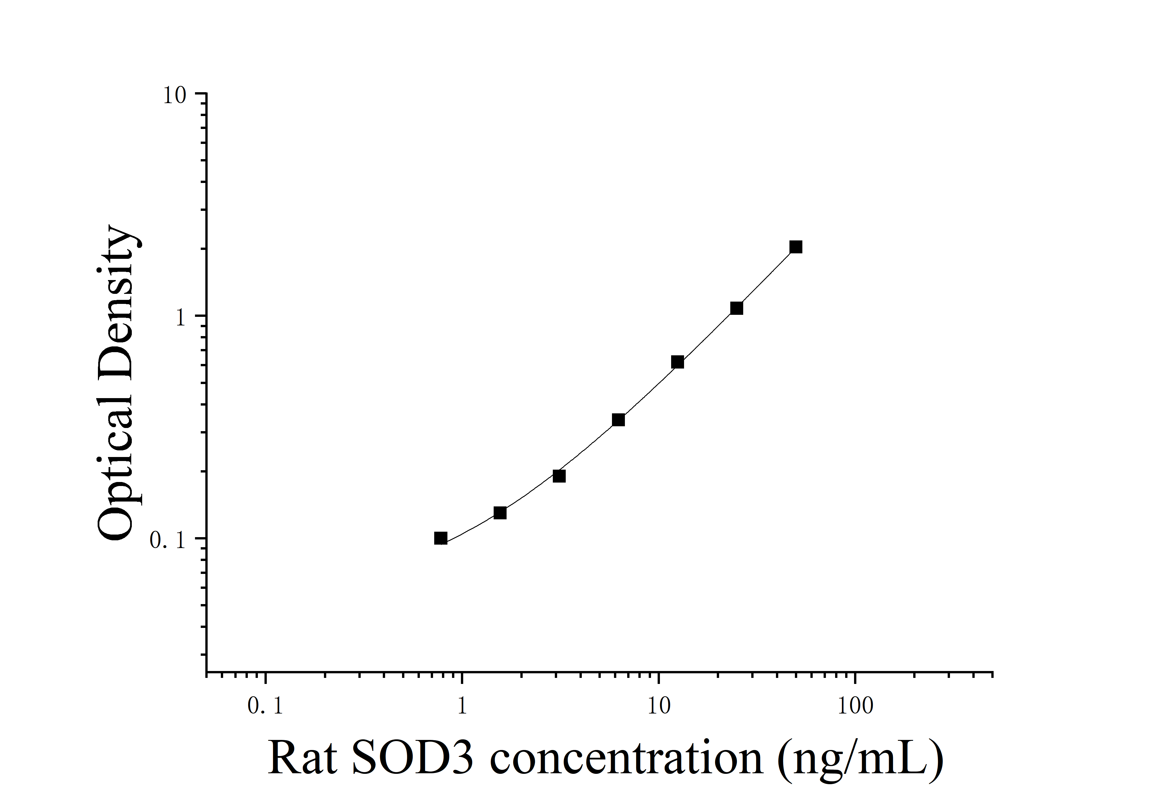 由于实验操作条件的不同( 如操作者、移液技术、洗板技术和稳定条件等),标准曲线的OD值会有所差异。以下数据和曲线仅供参考,实验者需根据自己的实验建立标准曲线。