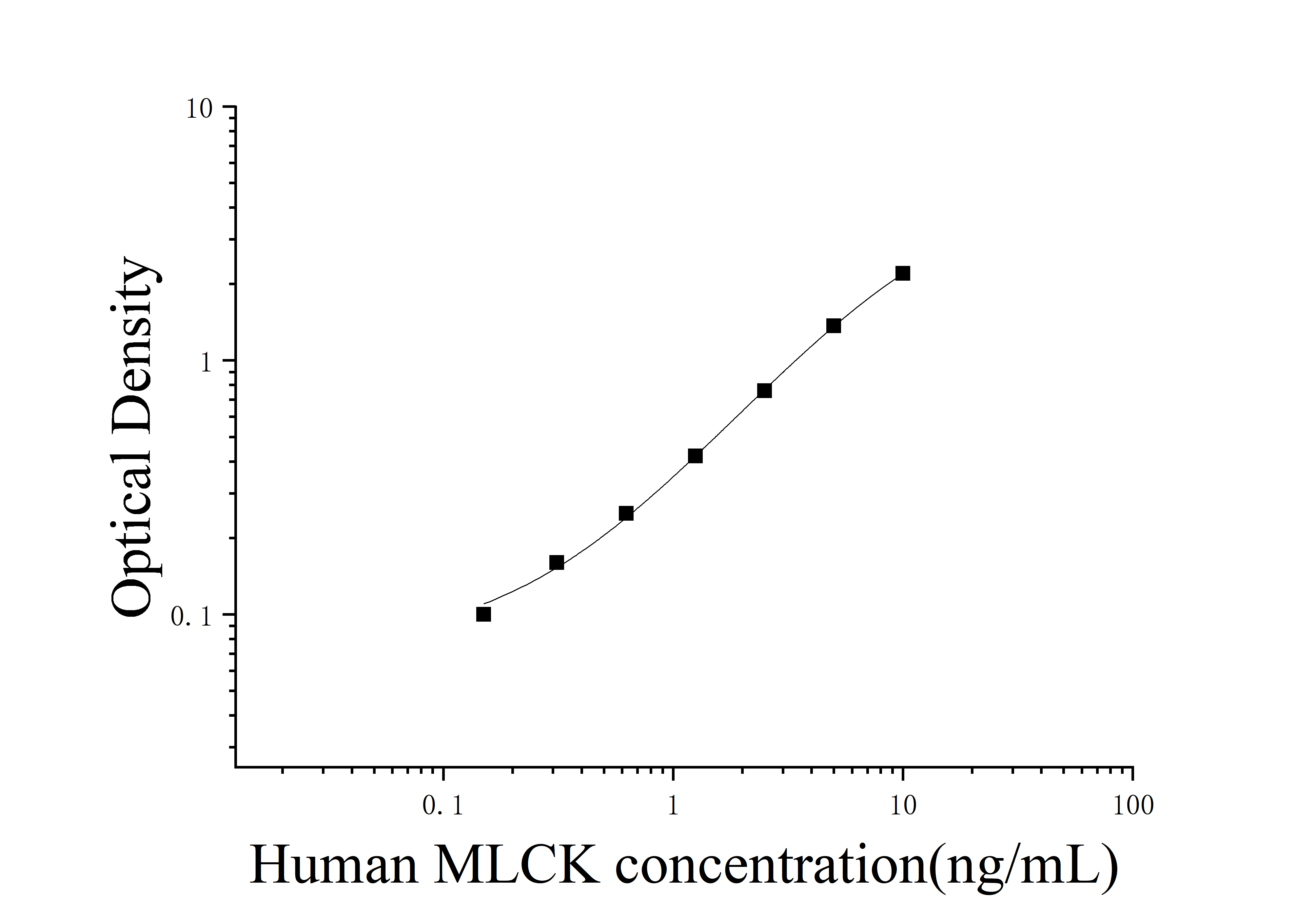 由于实验操作条件的不同( 如操作者、移液技术、洗板技术和稳定条件等),标准曲线的OD值会有所差异。以下数据和曲线仅供参考,实验者需根据自己的实验建立标准曲线。