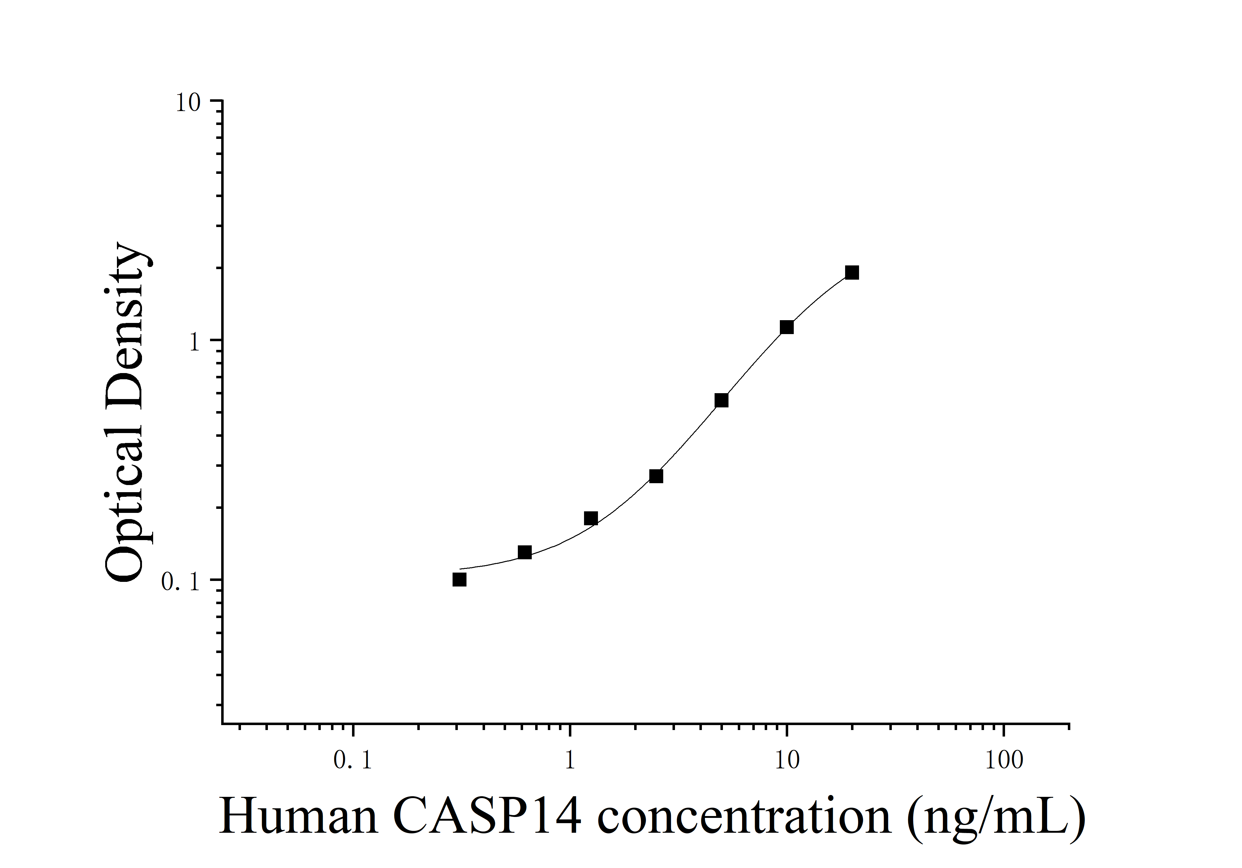 由于实验操作条件的不同( 如操作者、移液技术、洗板技术和稳定条件等),标准曲线的OD值会有所差异。以下数据和曲线仅供参考,实验者需根据自己的实验建立标准曲线。