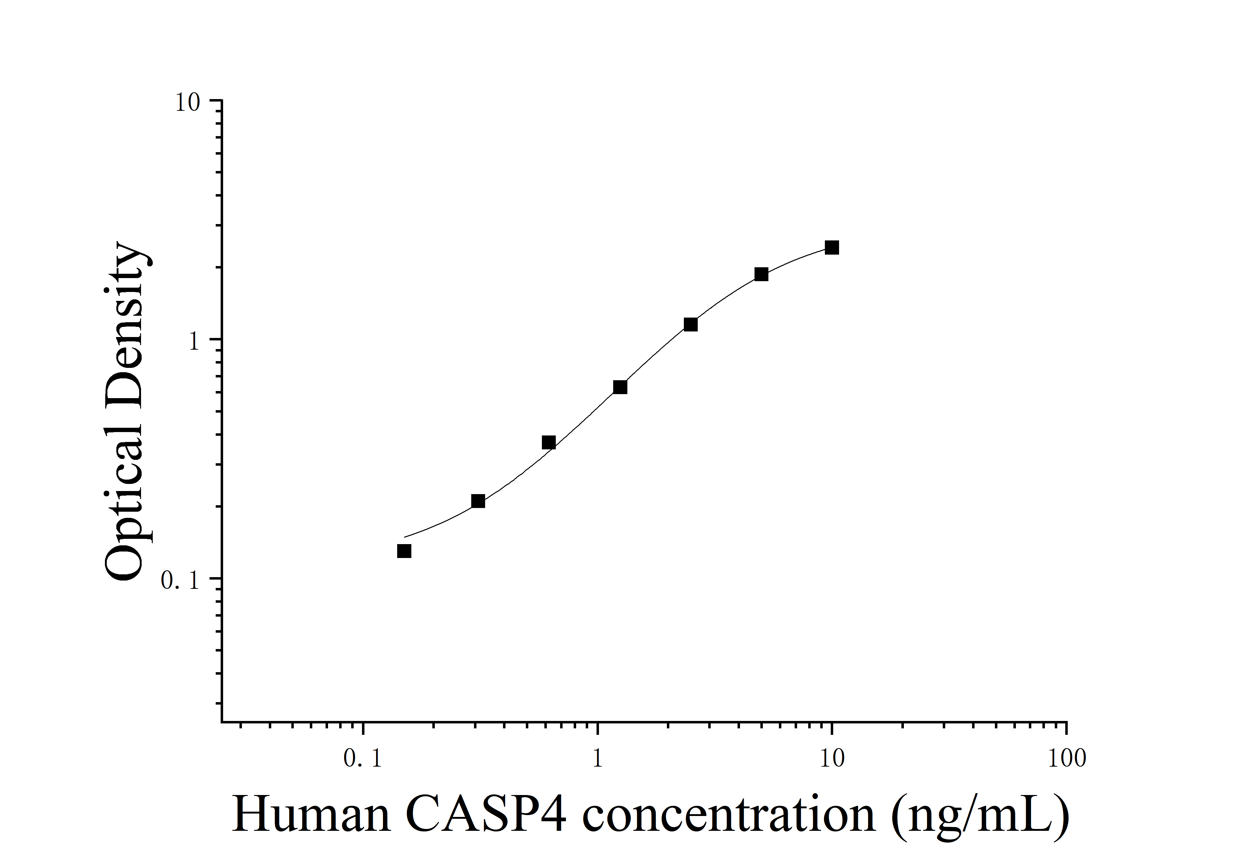 由于实验操作条件的不同( 如操作者、移液技术、洗板技术和稳定条件等),标准曲线的OD值会有所差异。以下数据和曲线仅供参考,实验者需根据自己的实验建立标准曲线。