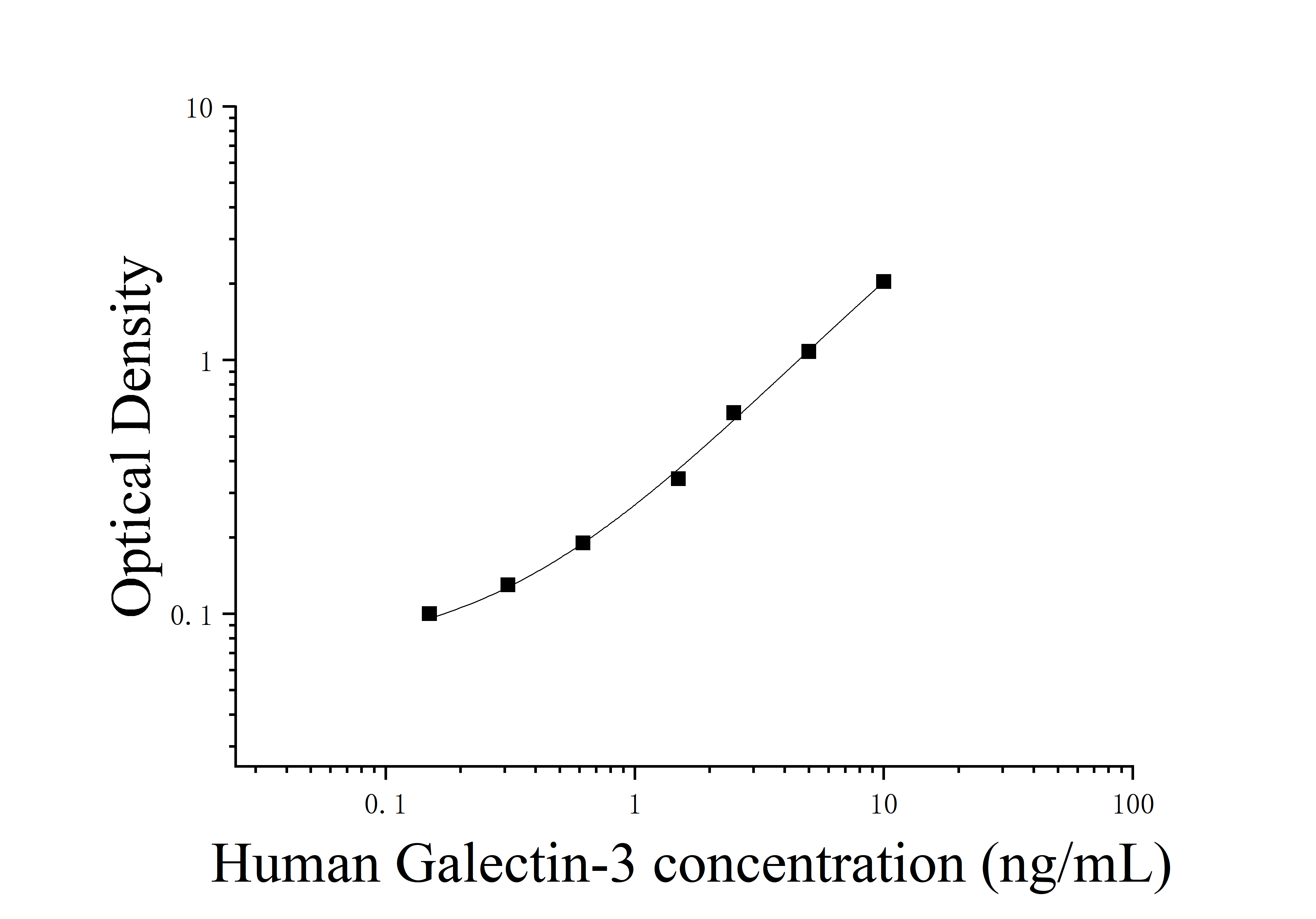 Galectin-3是一种蛋白质,它由位于14号染色体q21-q22位的一个基因LGALS3编码,是凝集素家族的成员。Galectin-3大约是30kDa,像所有的galectin一样,含有一个大约130个氨基酸的碳水化合物识别结合域(CRD),能够特异性地与β-半乳糖结合。Galectin-3(Gal-3)也是β-半乳糖苷结合蛋白家族的一员,在细胞-细胞粘附、细胞-基质相互作用、巨噬细胞激活、血管生成、转移、细胞凋亡中发挥重要作用。Galectin-3在细胞核、细胞质、线粒体、细胞表面和细胞外空间表达。它对β-半乳糖有亲和力,对细菌和真菌有抗菌活性。