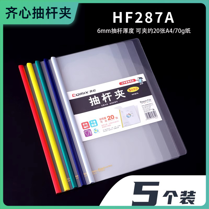 齐心大容量抽杆夹a4资料夹拉杆夹文件夹加厚档案试卷书皮夹学生用资料收纳