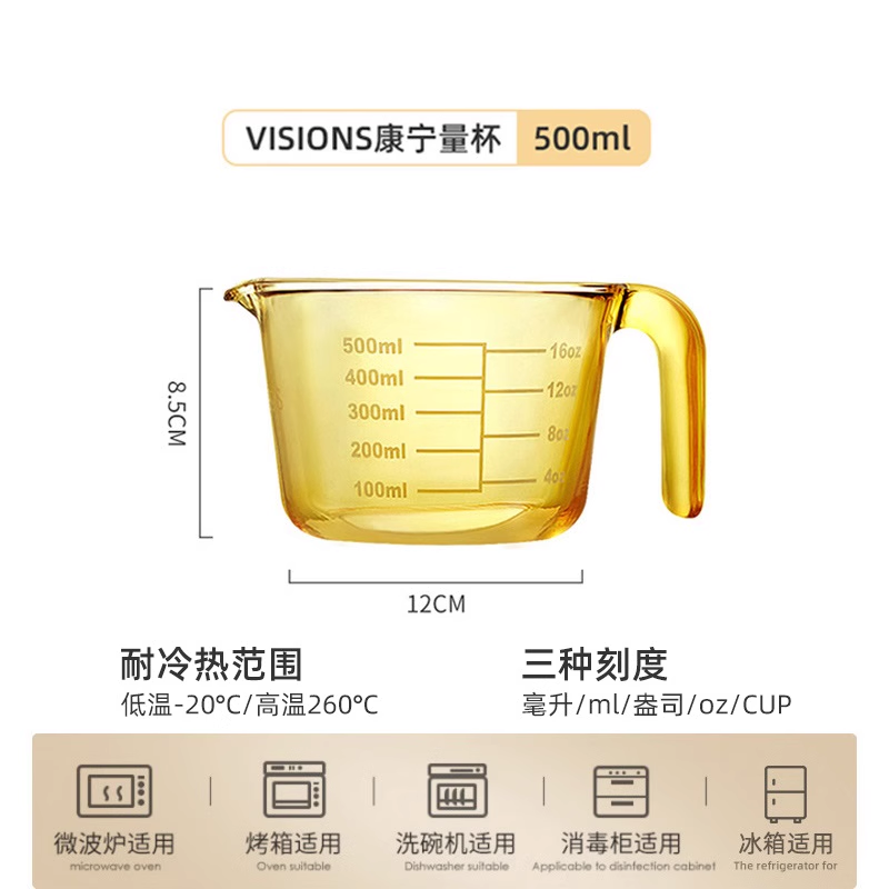 康宁带刻度玻璃耐高温微波炉可加热烘焙牛奶杯