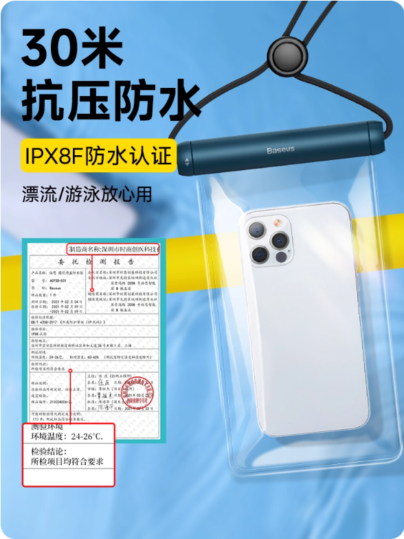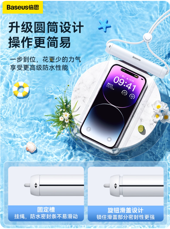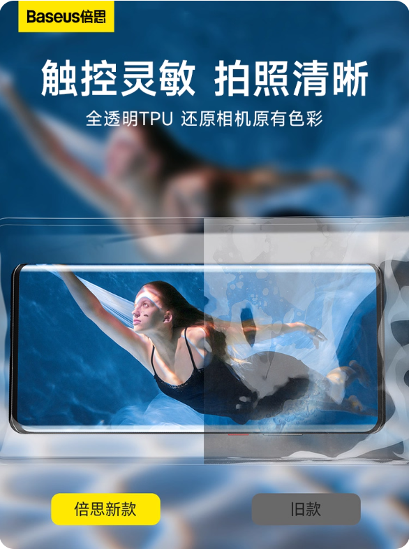 倍思手机防水袋可触屏拍摄游泳透明防雨密封