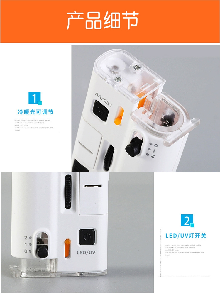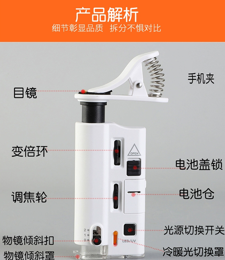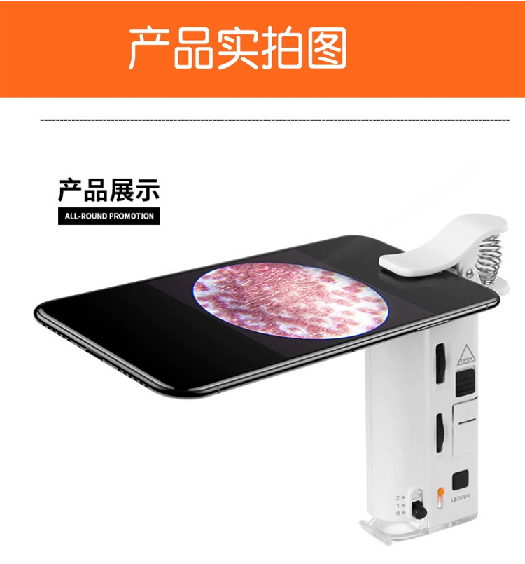 网红爆款60-100倍儿童迷你手机万能夹显微镜LED手持