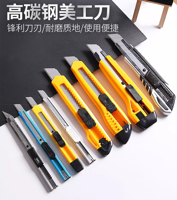 得力小型美工刀壁纸刀小号刀片防滑手工刀