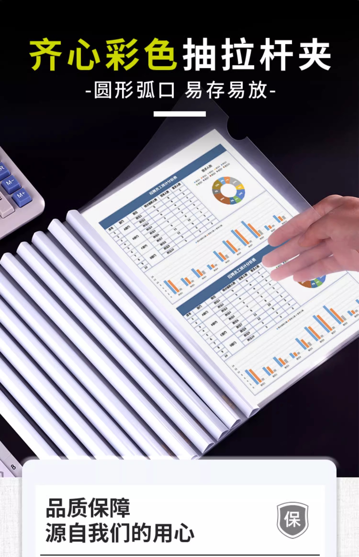 齐心大容量抽杆夹a4资料夹拉杆夹文件夹加厚档案试卷书皮夹学生用资料收纳