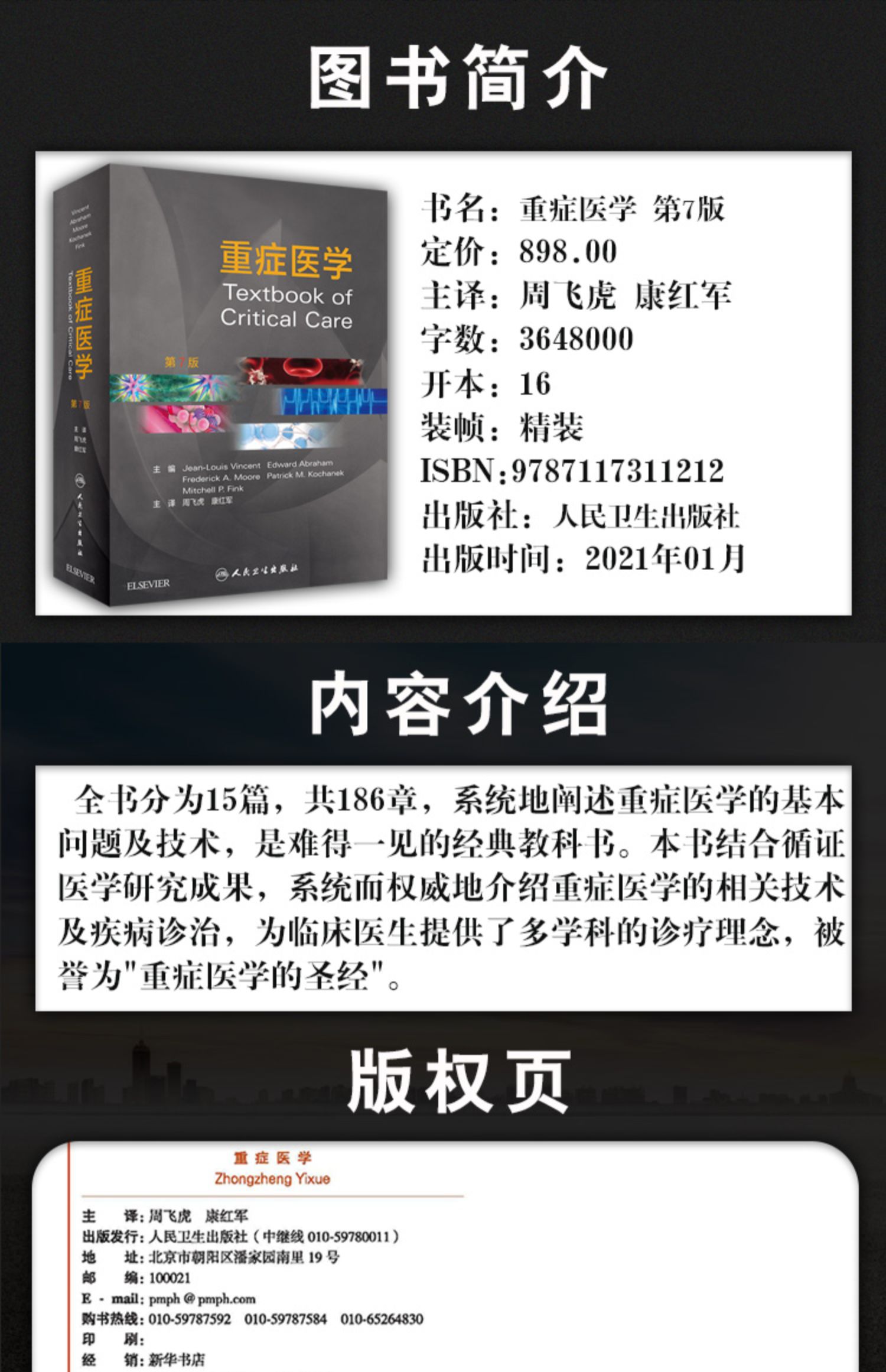 重症医学 第七版 第7版 周飞虎 康红军 急危重症实用书籍超声icu主治医师手册危重症监护室的故事急诊教程 人民卫生出版社