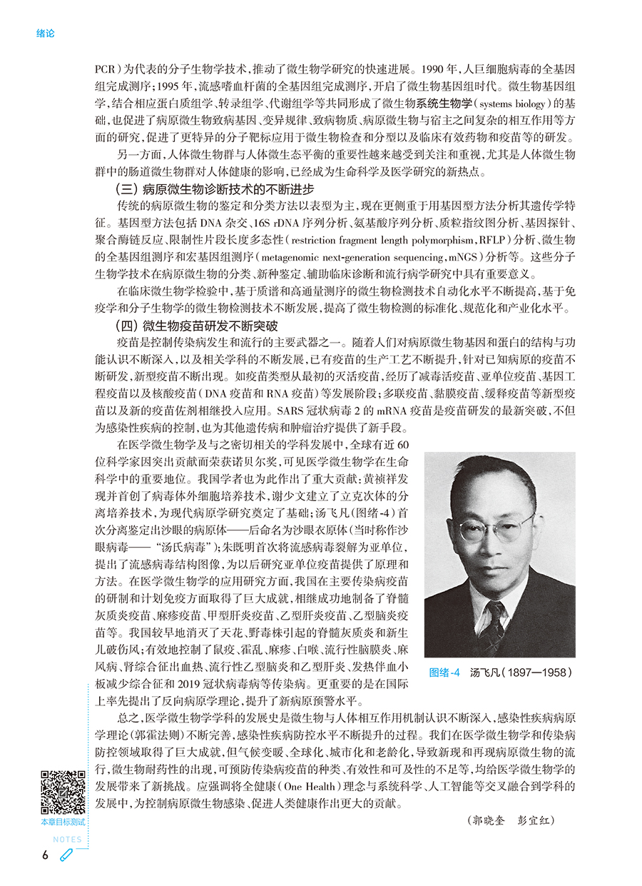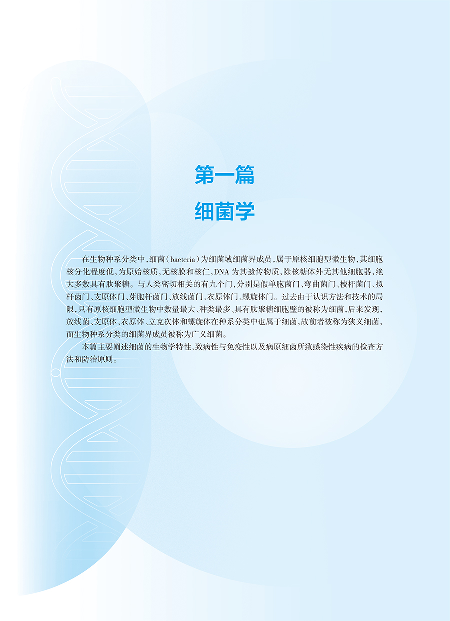 本教材由绪论、细菌学、病毒学、真菌学、人体微生物群和附录六部分组成,共计39章。其中,绪论主要围绕医学微生物的基本概念、医学微生物学学科研究范畴以及医学微生物学发展简史进行介绍。细菌学、病毒学、真菌学和人体微生物群四部分单独成篇。每一篇又分为总论和各论。总论内容主要包括对应微生物的形态结构,生长繁殖,遗传变异等生物学性状,病原微生物和宿主机体的相互关系以及特异性诊断和防治措施等方面的共同特点和原则,各论则具体介绍了与临床感染性疾病密切相关的各种病原微生物及微生物群上述各方面的特点。附录则包括对重要病原微生物的归纳、基于器官系统的病原微生物总结及病原微生物实验室生物安全。