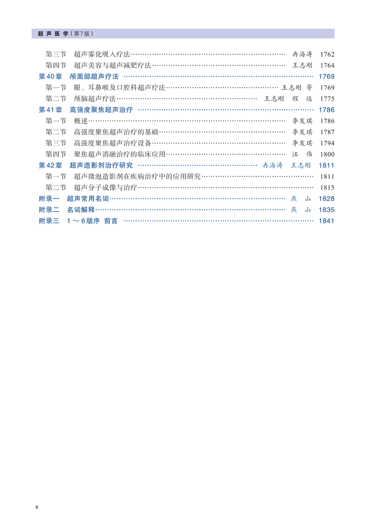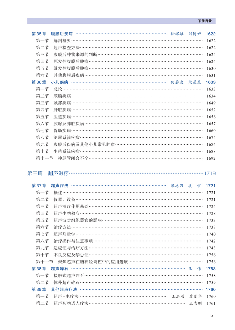第三篇超声治疗,讲述了各种超声疗法、超声碎石、颅面部超声疗法、高强度 超声治疗、超声造影剂治疗研究。